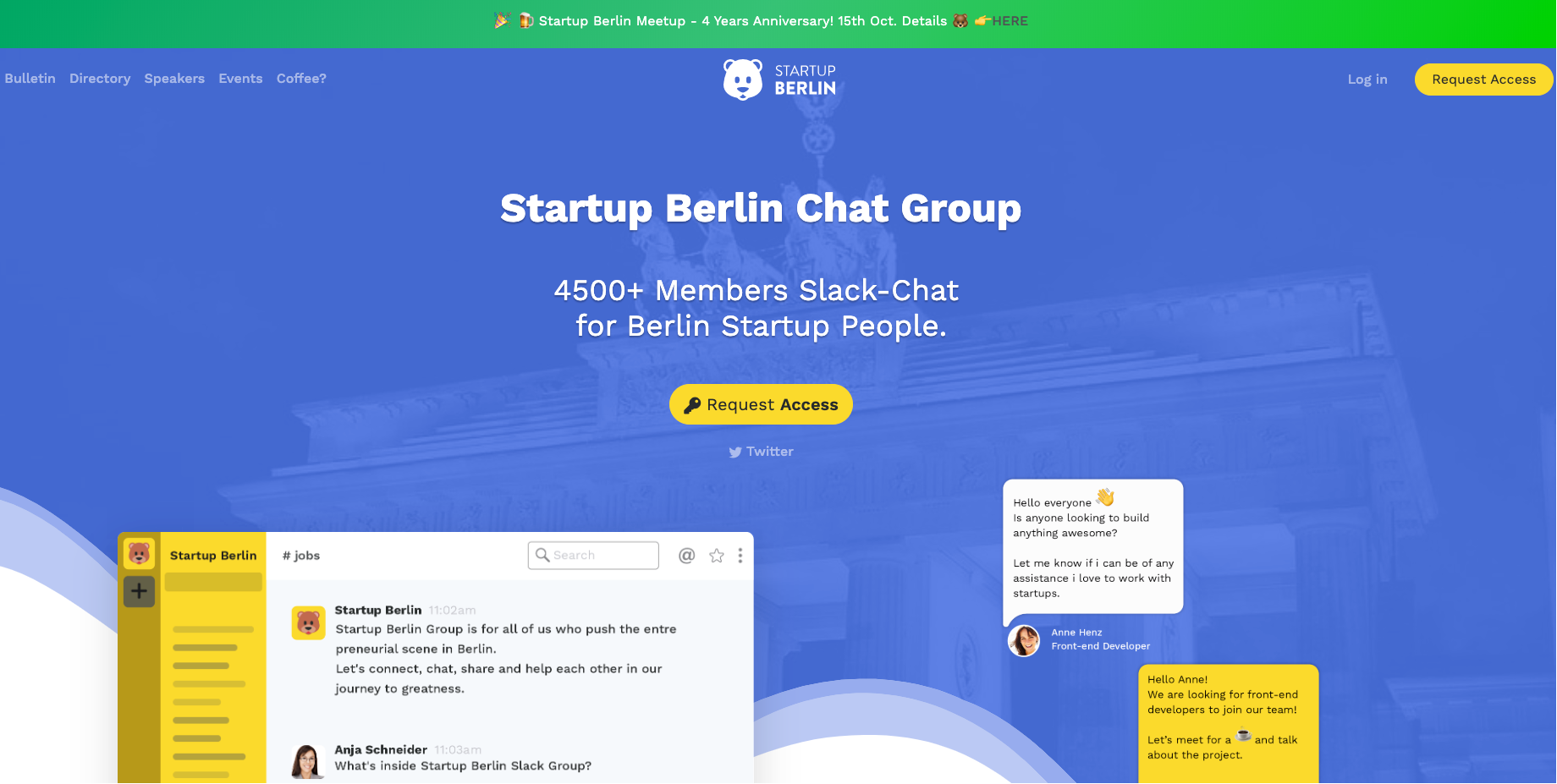VisitI contributed to the startup community making a landing page for Startup Berlin Slack-Chat